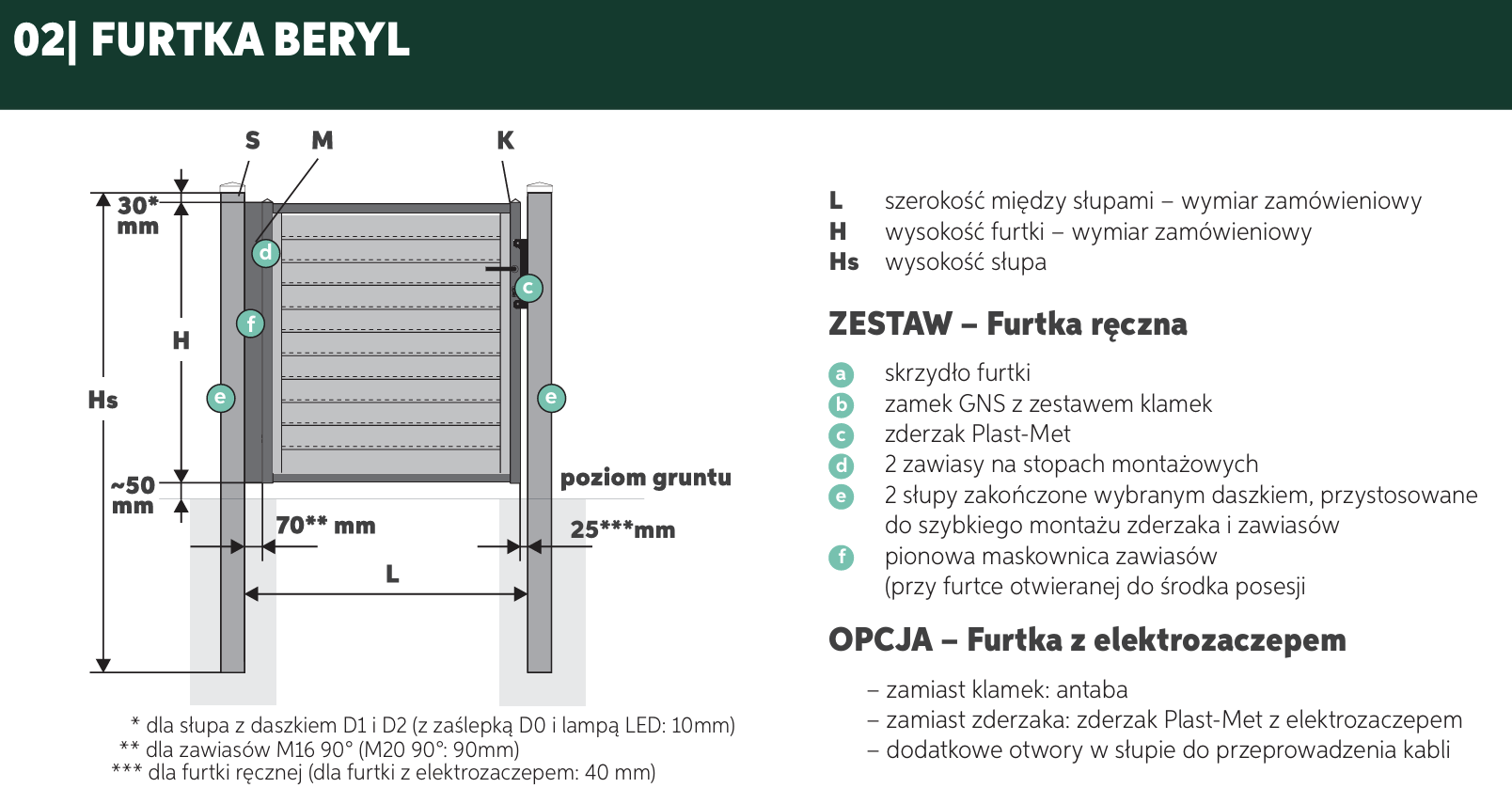 - Zamek, zawiasy M20, słupy z daszkami