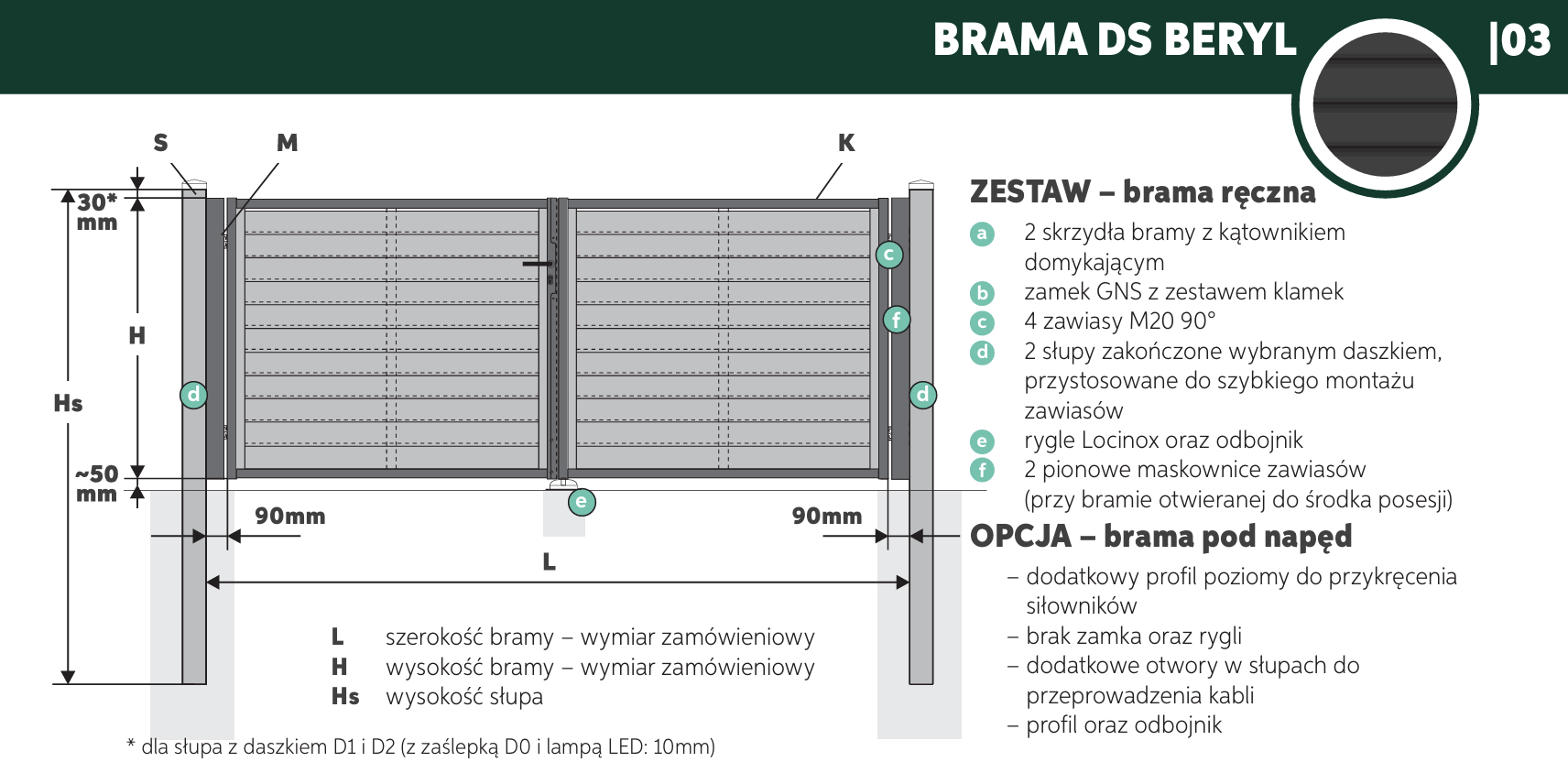 System BERYL oferuje również bramy w wersji pod napęd, zarówno przesuwne, jak i dwuskrzydłowe. Dostępne są kompletne zestawy z napędami Marantec i pilotami, idealne do użytku domowego lub w inwestycjach deweloperskich.