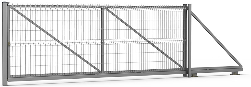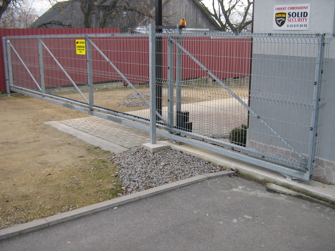Brama przesuwna panelowa, ocynkowana ogniowo. Istnieje możliwość lakierowania proszkowego.