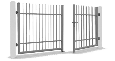 • brama dwuskrzydłowa o solidnej konstrukcji montowana do systemowych słupów stalowych lub murowanych za pomocą płytek montażowych