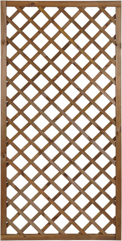 Kratka diagonalna BJORK R34 prosta 90×180 Brąz stanowi element architektury ogrodowej służący do aranżacji ogrodu, jak również do stworzenia niepowtarzalnego otoczenia wokół domu. Jej połączenie z pnącymi roślinami daje możliwość wykonania wielu pięknych i eleganckich kompozycji. Kratka stanowi również doskonałą podporę dla roślin, wspomagając tym samym ich wzrost. Dzięki niej jesteśmy w stanie samodzielnie wykreować wymarzoną strefę wypoczynku i relaksu. Ażurowa konstrukcja wraz z roślinami zapewni przyjemny cień oraz kameralne otoczenie, jednocześnie umożliwiając stały dostęp świeżego powietrza. Kratkę można także zamontować na balkonie w celu zachowania większej prywatności, a pnące kwiaty dodatkowo go upiększą. Drewno zostało zaimpregnowane ciśnieniowo, co gwarantuje ochronę przed działaniem niesprzyjających warunków atmosferycznych, a także przed szkodnikami i grzybami, jednocześnie wybarwia drewno ciepłym brązowym kolorem.