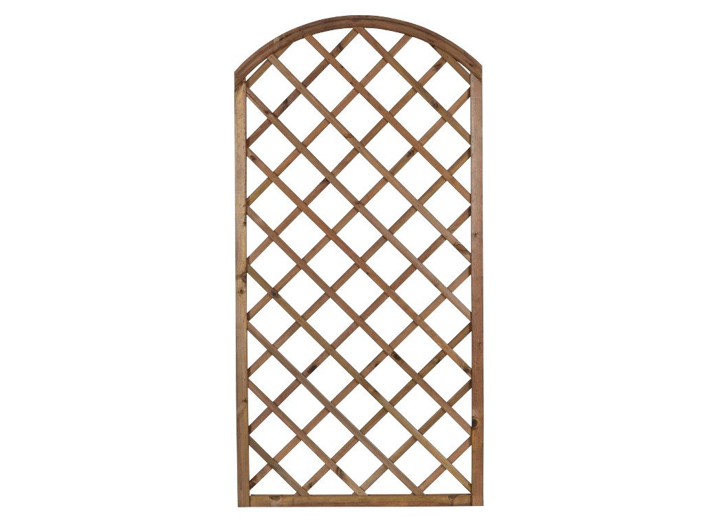 Kratka DIAGONALNA R34 PIA z łukiem 90×180 stanowi element architektury ogrodowej służący do aranżacji ogrodu, jak również do stworzenia niepowtarzalnego otoczenia wokół domu. Jej połączenie z pnącymi roślinami daje możliwość wykonania wielu pięknych i eleganckich kompozycji. Kratka stanowi również doskonałą podporę dla roślin, wspomagając tym samym ich wzrost. Dzięki niej jesteśmy w stanie samodzielnie wykreować wymarzoną strefę wypoczynku i relaksu. Ażurowa konstrukcja wraz z roślinami zapewni przyjemny cień oraz kameralne otoczenie, jednocześnie umożliwiając stały dostęp świeżego powietrza. Kratkę można także zamontować na balkonie w celu zachowania większej prywatności, a pnące kwiaty dodatkowo go upiększą. Drewno zostało zaimpregnowane ciśnieniowo, co gwarantuje ochronę przed działaniem niesprzyjających warunków atmosferycznych, a także przed szkodnikami i grzybami i jednocześnie wybarwia drewno ciepłym brązowym kolorem.