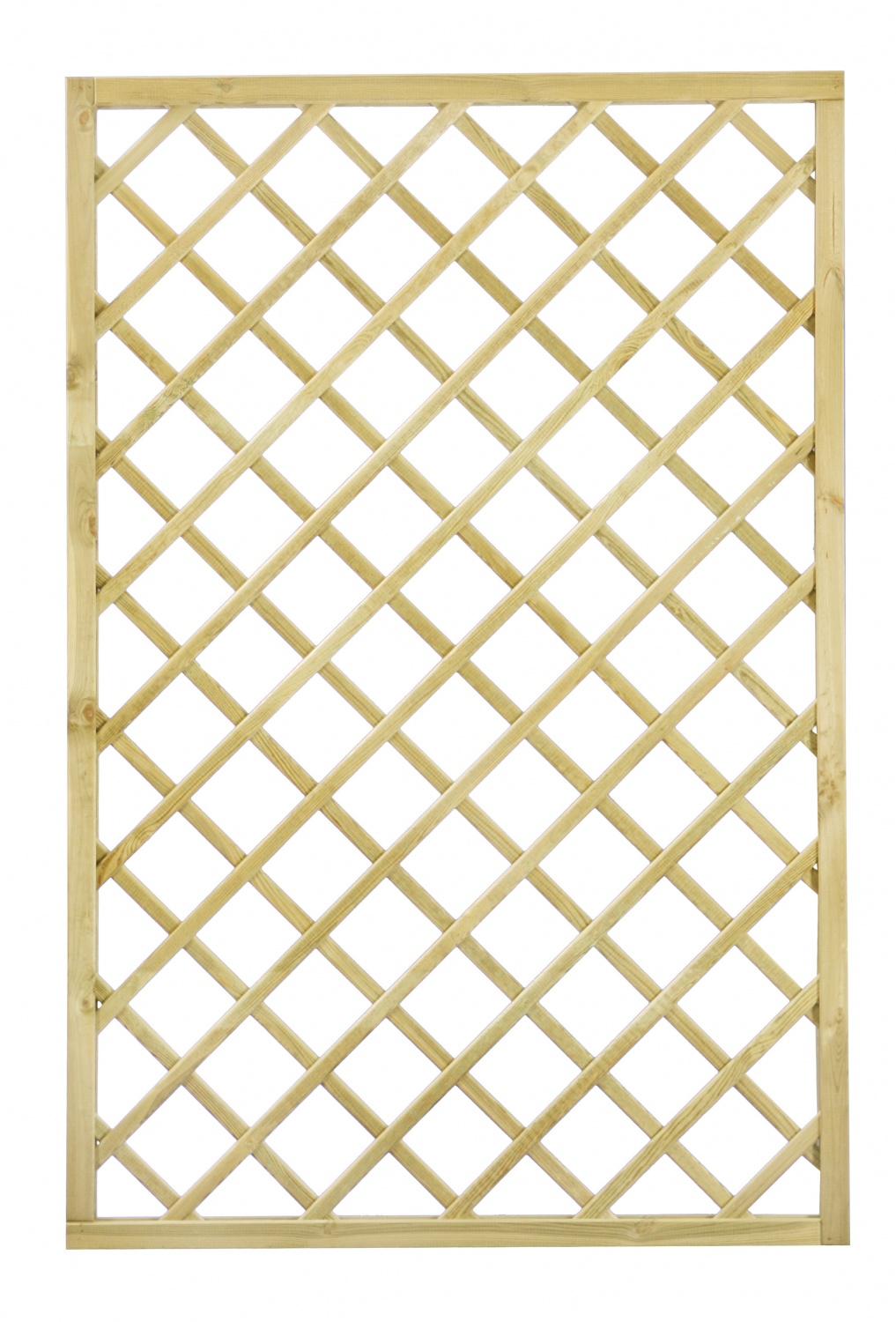 Kratka DIAGONALNA R34 prosta 90×180 stanowi element architektury ogrodowej służący do aranżacji ogrodu, jak również do stworzenia niepowtarzalnego otoczenia wokół domu. Jej połączenie z pnącymi roślinami daje możliwość wykonania wielu pięknych i eleganckich kompozycji. Kratka stanowi również doskonałą podporę dla roślin, wspomagając tym samym ich wzrost. Dzięki niej jesteśmy w stanie samodzielnie wykreować wymarzoną strefę wypoczynku i relaksu. Ażurowa konstrukcja wraz z roślinami zapewni przyjemny cień oraz kameralne otoczenie, jednocześnie umożliwiając stały dostęp świeżego powietrza. Kratkę można także zamontować na balkonie w celu zachowania większej prywatności, a pnące kwiaty dodatkowo go upiększą. Drewno zostało zaimpregnowane ciśnieniowo, co gwarantuje ochronę przed działaniem niesprzyjających warunków atmosferycznych, a także przed szkodnikami i grzybami. Dodatkowym atutem jest możliwość pomalowania kratki na dowolny kolor.