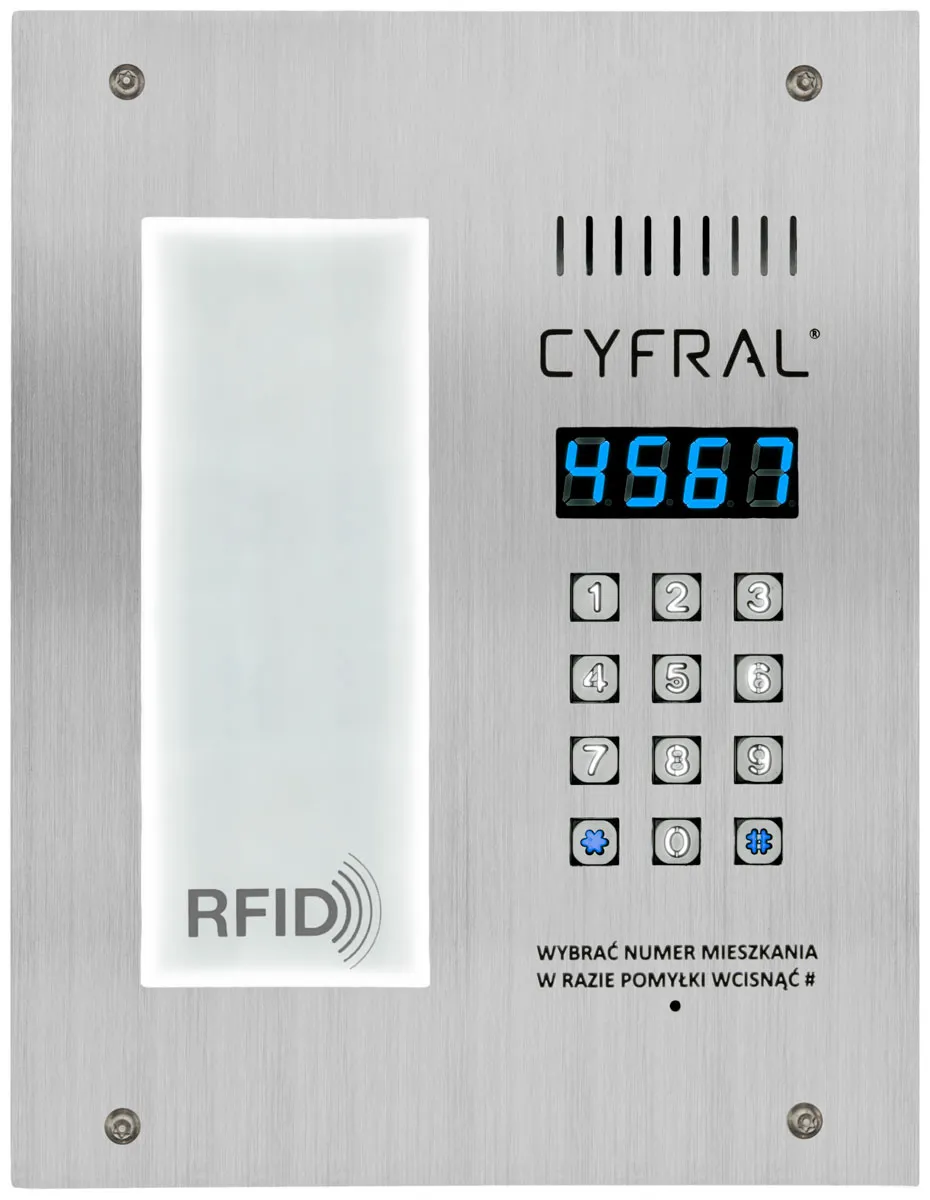 PC-3000RL to panel cyfrowy ze stali kwasoodpornej z czytnikiem breloków zbliżeniowych RFID. Panel posiada podświetlaną listę lokatorów oraz podświetlaną klawiaturę mechaniczną pełniącą funkcję zamka szyfrowego. Współpracuje z elektroniką analogowo-cyfrową CYFRAL typu: CC1000, CC1500, CC1550, CC500P oraz innymi produkowanymi przez CYFRAL. W połączeniu z elektroniką CC1000, CC1500, CC1550 przeznaczony jest do modernizacji istniejących już instalacji domofonowych CYFRAL typu: 1+n (płytki elektroniki TD-3, TD-4, TD-6) na budynkach wielorodzinnych o niskiej i wysokiej kondygnacji. Natomiast w połączeniu z elektroniką CC500P przeznaczony jest do modernizacji istniejących już instalacji typu 4+n (wielożyłowych). W przypadku dobrego stanu technicznego okablowania taka modernizacja nie wymaga wymiany unifonów, co znacząco obniża koszty montażu.