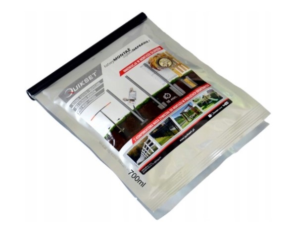 Przeznaczona jest do montażu słupków w otworach o średnicy 15-25 cm. Q700 jest najlepszym rozwiązaniem do montażu słupków ogrodzeniowych oraz elementów montowanych w otworach kopanych łopatą. Opakowanie przeznaczone jest do montażu standardowego słupka fi 5-6 cm lub 4x6 cm w otworze fi15 cm na głębokość 60 cm.