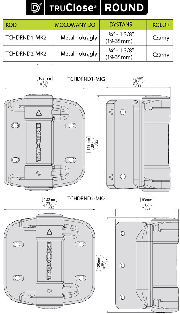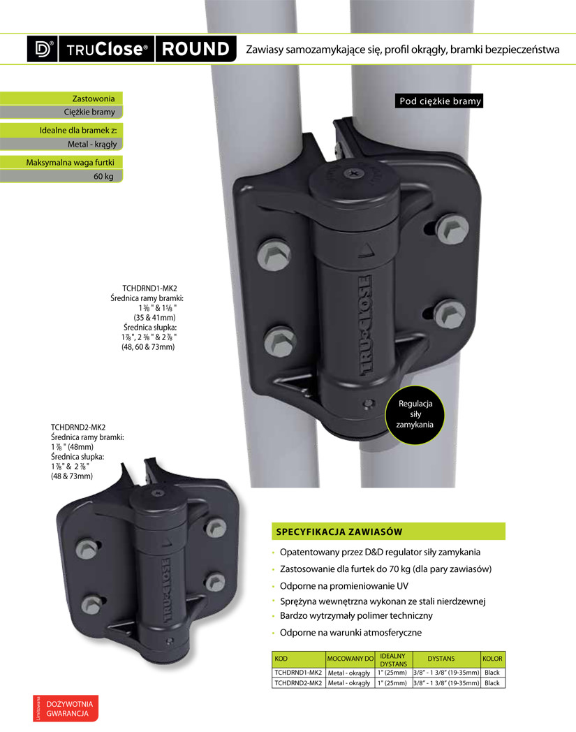 Samozamykające zawiasy TCHDRND2-MK2 do furtek bezpieczeństwa do rur 48,3 mm – 2 sztuki