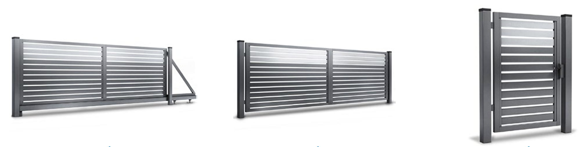 Elementy w zestawie z bramą dwuskrzydłową: Rama 60x40 mm, wypełnienie 80x20 mm, rygle, zawiasy regulowane
