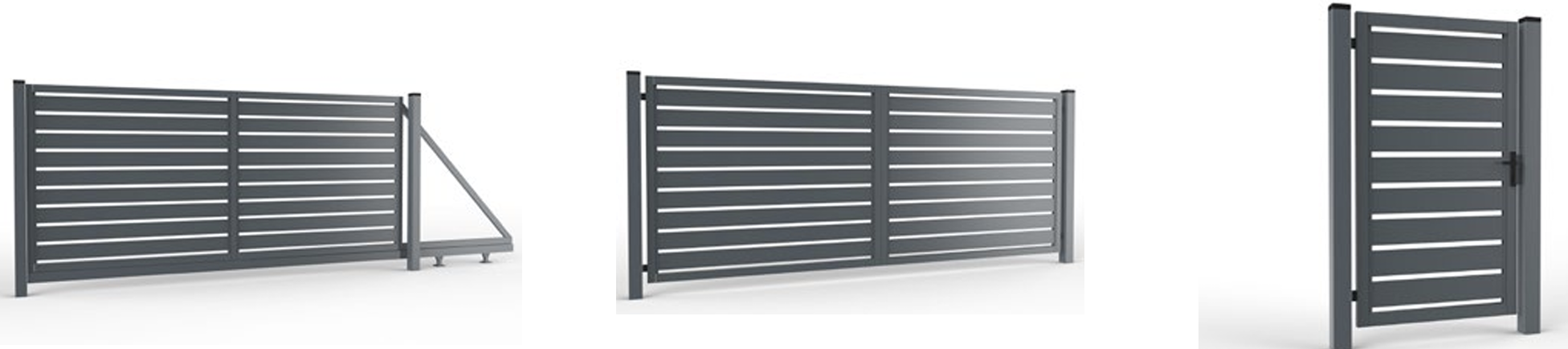 Elementy w zestawie z bramą dwuskrzydłową: Rama 60x40 mm, wypełnienie 120x20 mm, rygle, zawiasy regulowane