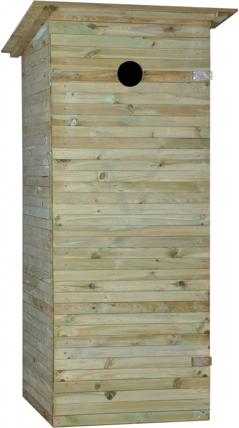Wychodek drewniany – to niezbędny element każdej budowy lub działki. Estetyczne wykonanie produktu, jak również jego funkcjonalność umożliwia komfort użytkowania. Wychodek zamykany jest na haczyk z oczkiem, co zapewnia prywatność. Kolejna jego zaleta to wykonany otwór w drzwiach, który ułatwia wentylację oraz dopływ światła.