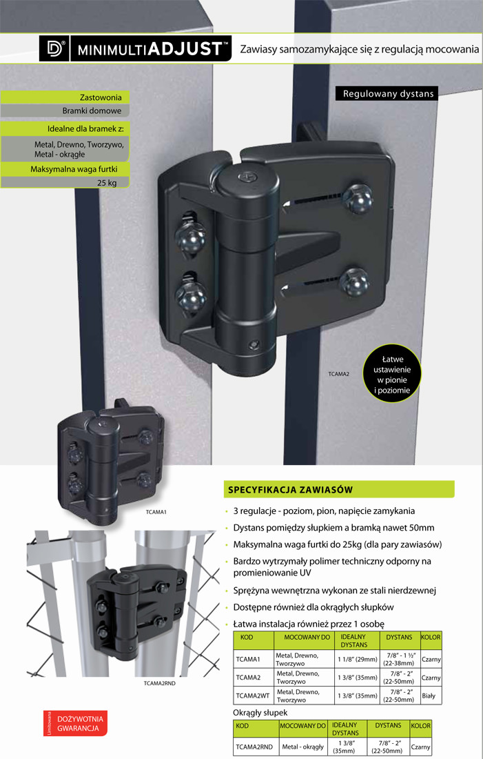 • 3 regulacje - poziom, pion, napięcie zamykania