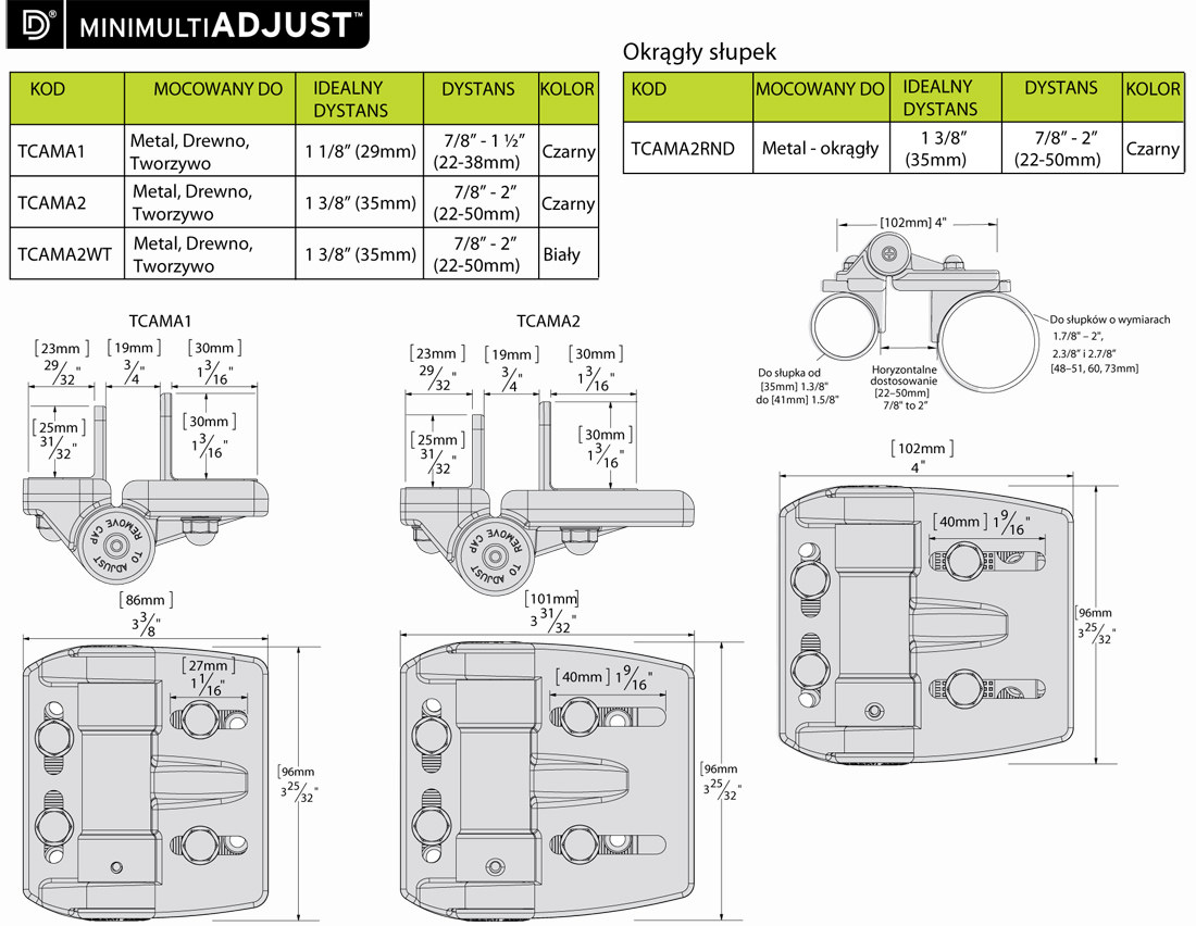 • Modele “L2” posiadają z dwóch boków podwójne mocowanie do słupka prostokątnego