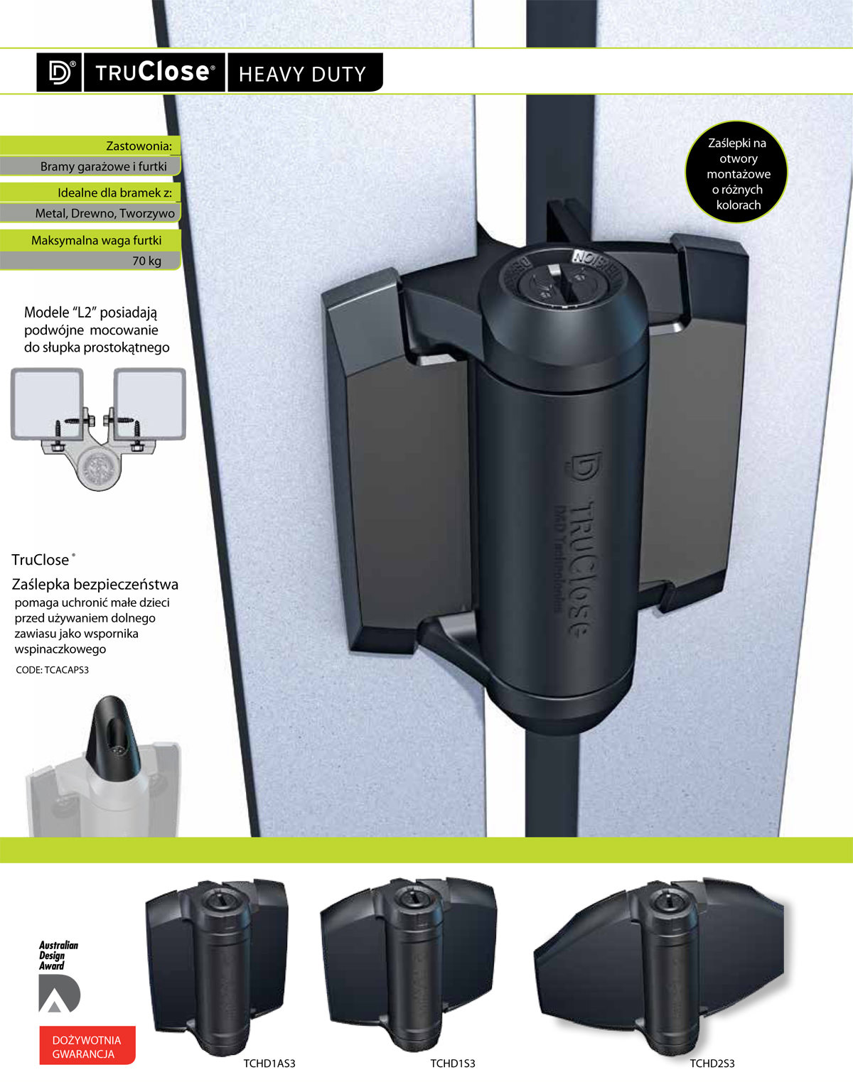 • Możliwość zamówienia zaślepek bezpieczeństwa nakładanych na regulator siły zamykania